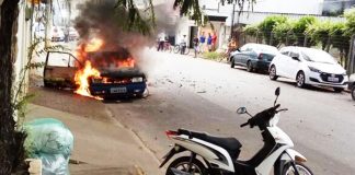 Carro pega fogo em Itaperuna
