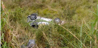 Carro capota na BR 356, em Cardoso Moreira