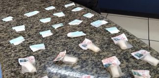 Polícia apreende mochila com grande quantidade de drogas e materiais em...