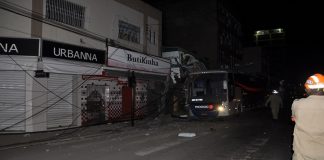 Ônibus invade calçada e bate em loja no Centro de Itaperuna