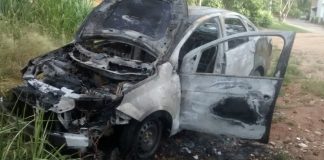 Carro é destruído pelo fogo no bairro Cooperativa, em Cambuci