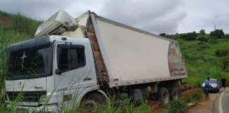 Caminhão sai da pista na RJ-116, em Santo Antônio de Pádua