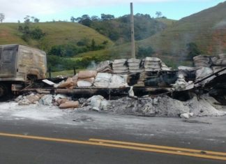 Caminhão pega fogo próximo a São José de Ubá